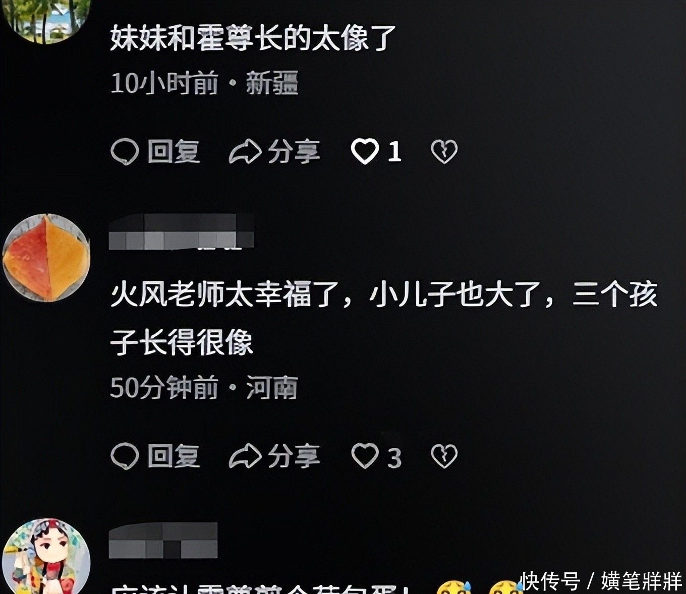 还有人感慨:“火风把小儿子藏得太严实了,这次突然亮相,堪比年度情感彩蛋。”亦有网友打趣留言:“建议三口之家组团开演唱会。”